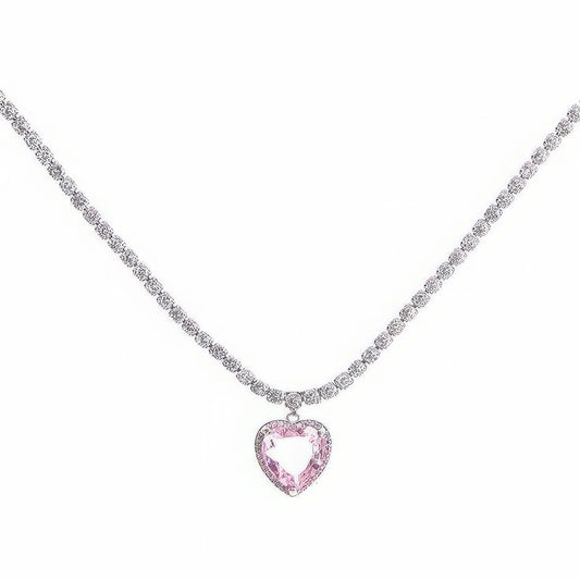 Korean Design Pink Heart Stone Chain Necklace